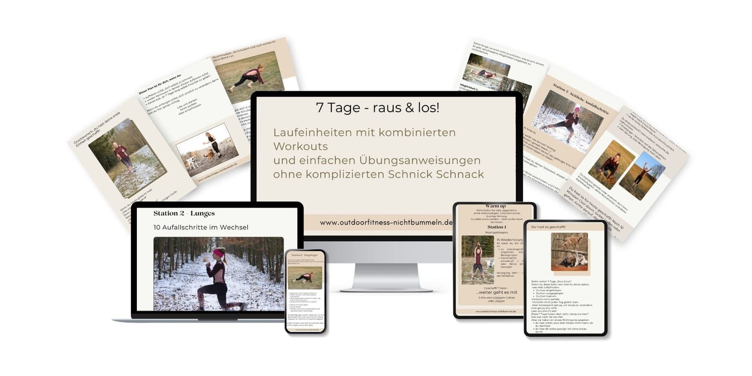 ...mit „Raus + Los – Dein Outdoor-Fitness-Start in 7 Tagen“ bekommst du deine Basis, um Freude an regelmäßiger Bewegung zu haben